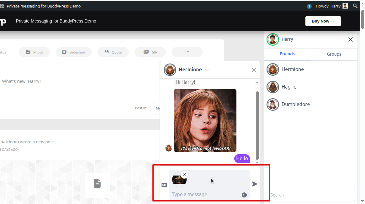 Once enabled, a chat bubble will appear at the bottom corner of your website for logged-in users. You may check demo of Private Messaging for BuddyPress.