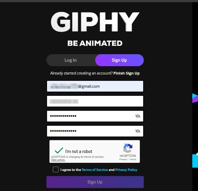 3. Sign In if you already have credentials or Sign Up for new giphy account.