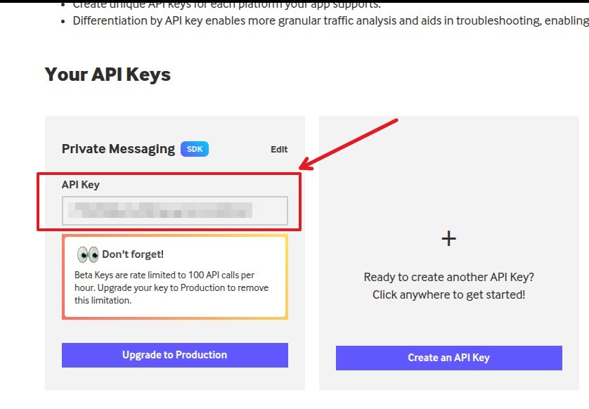 5. Click on “Create an API Key”